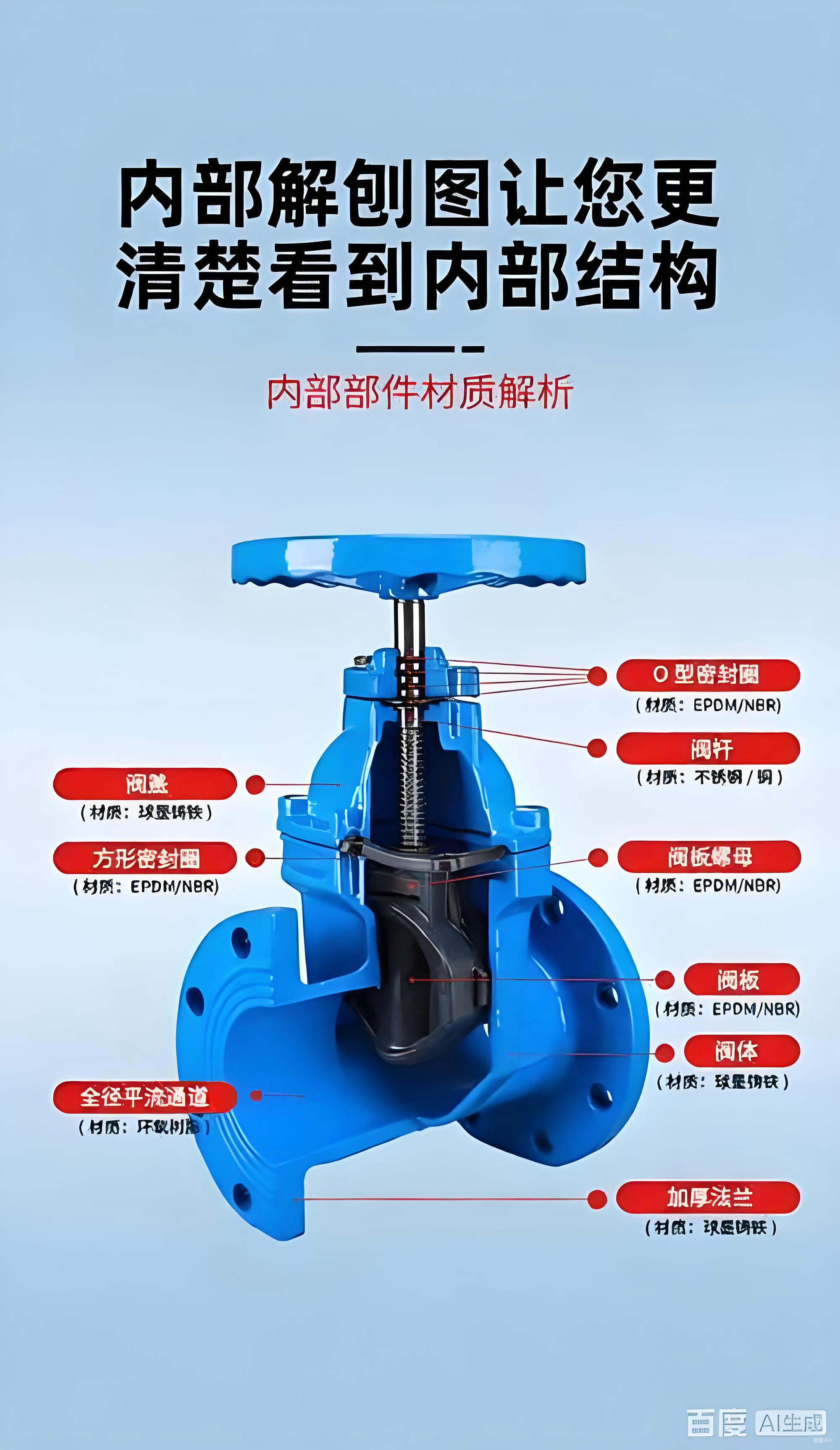 • 閘板整體包覆三元乙丙橡膠或丁腈橡膠,密封可靠,減少泄漏風(fēng)險 。 ‌