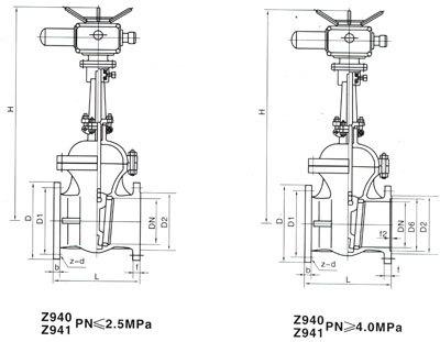 三、Z941H-16C DN50鑄鋼電動閘閥 耐溫425℃ 法蘭連接電動閘閥外形圖: